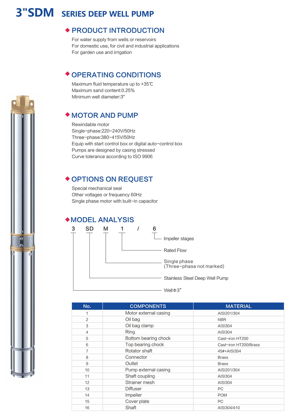 3"SDM Series Deep Well Pump
