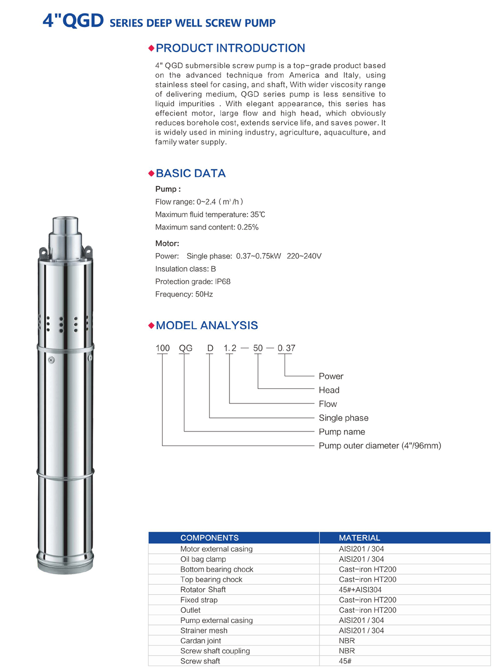 4"QGD Series Deep Well Screw Pump